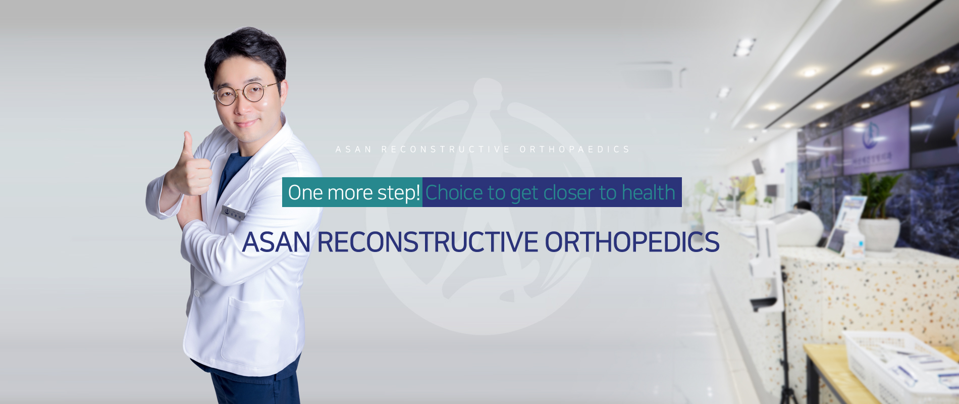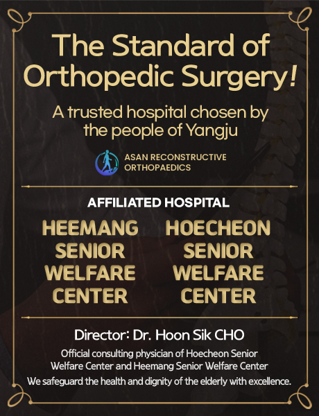 [ASAN RECONSTRUCTIVE ORTHOPEDICS] will become an essential hospital in northern Gyeonggi Province. Through trust and communication, we will continue to develop and become a hospital that anyone wants to form a relationship with. We are a hospital that is always with you, 'one step closer'.
