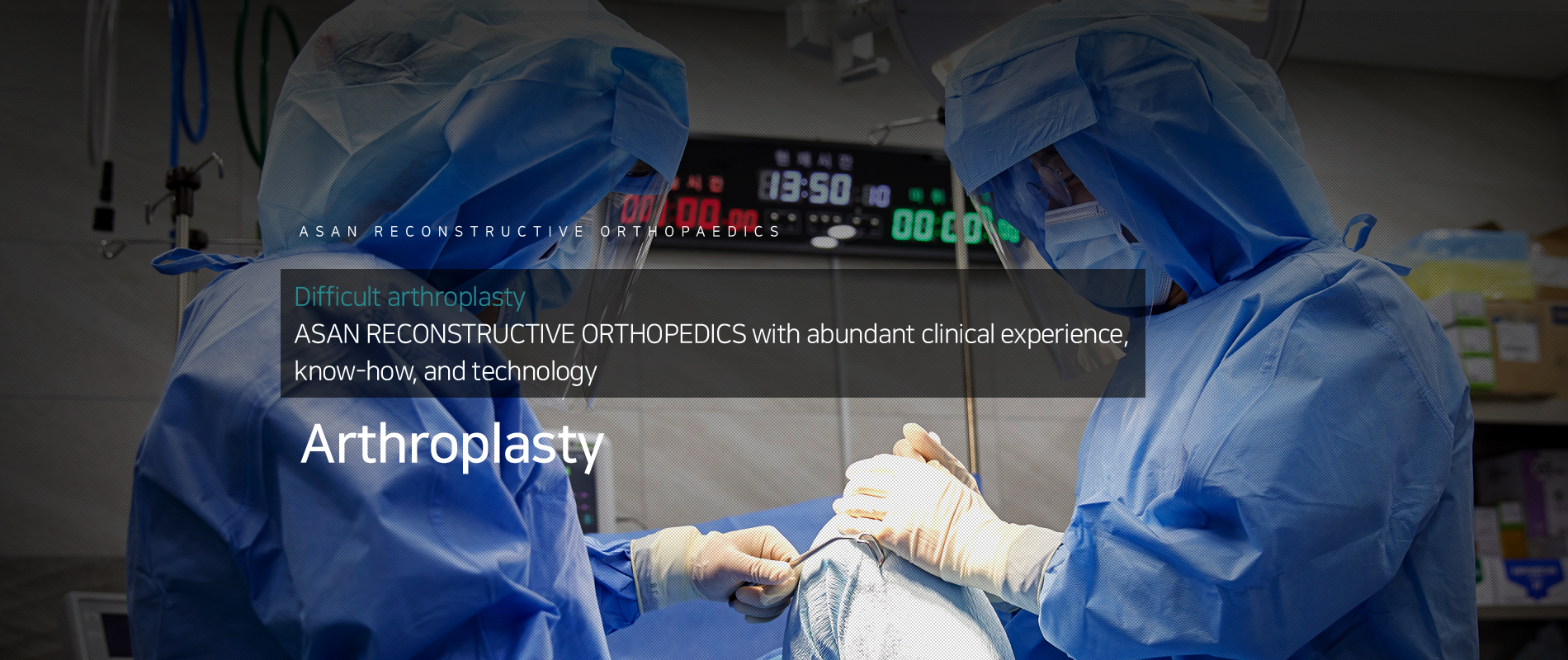 I learned all the medical techniques and knowledge related to knee arthroplasty from a great mentor in the Department of Orthopedic Surgery at Asan Medical Center, and I properly acquired the latest orthopedic techniques through domestic and international training programs. Based on this, I have accumulated a wealth of surgical experience and successfully performed and presented extremely difficult surgeries. [Reconstruction] is a promise I make with this confidence.