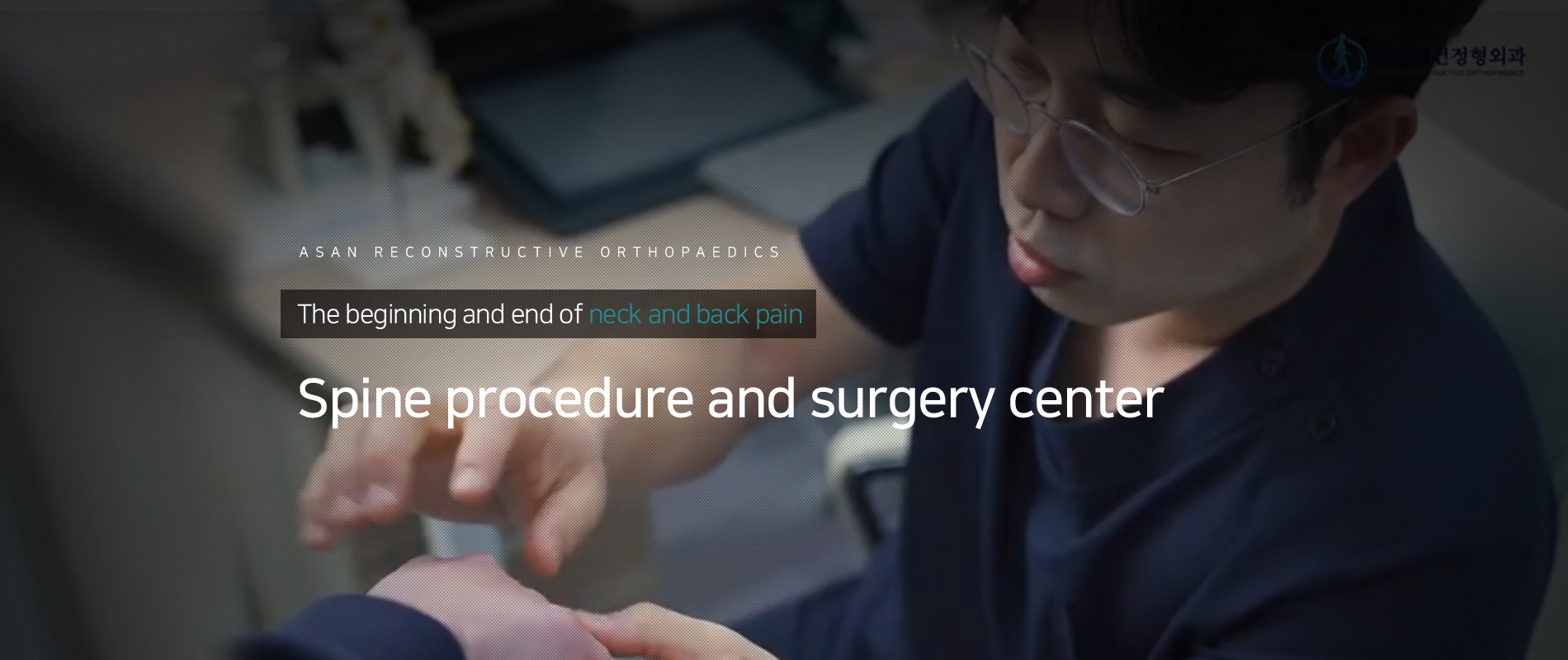 How reassuring would it be to have a doctor who can take responsibility for your body within reach and be able to contact them at any time? That's why [ASAN RECONSTRUCTIVE ORTHOPEDICS] has taken one step further to reach all those who have lost their daily lives due to physical and mental pain. As a doctor, taking responsibility holds two meanings. The first is to restore physical health to its fullest through skill, dedication, and effort, and the second is to [reconstruct] psychosocial health to the fullest extent through constant communication, attention, and compensation. Only through this kind of [reconstruction] can doctors and patients achieve complete healing and experience a different level of medical service.