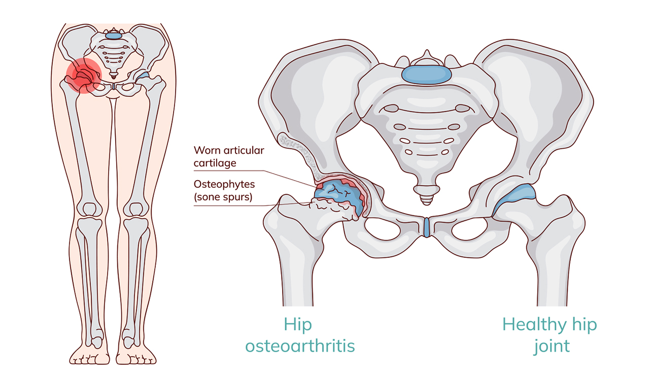 고관절 퇴행성 관절염은 고관절 연골이 닳아 없어지면서