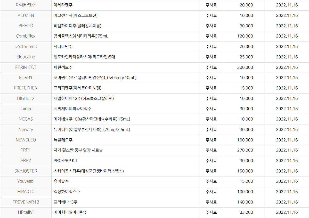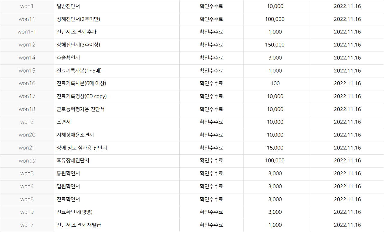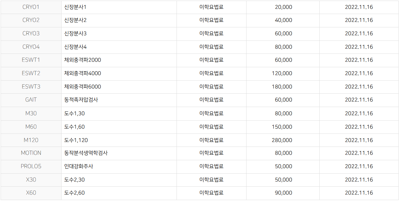 의료법 제45조 1항, 2항 및 동법 시행규칙 제42조 1~3항에 의하여 비급여 진료비용을 고지합니다.